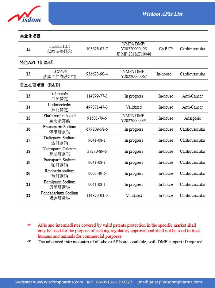 7 Fondaparinux sodium 114870-03-0 Pilot In-house Filing in process Cardiovascular