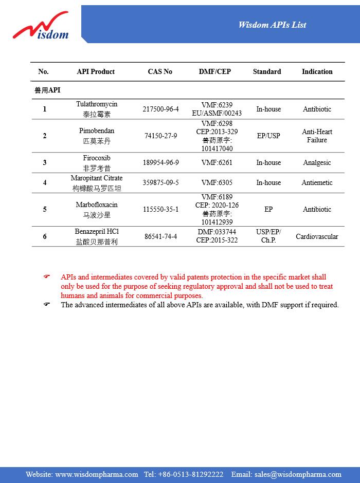 * Download API list Veterinary use