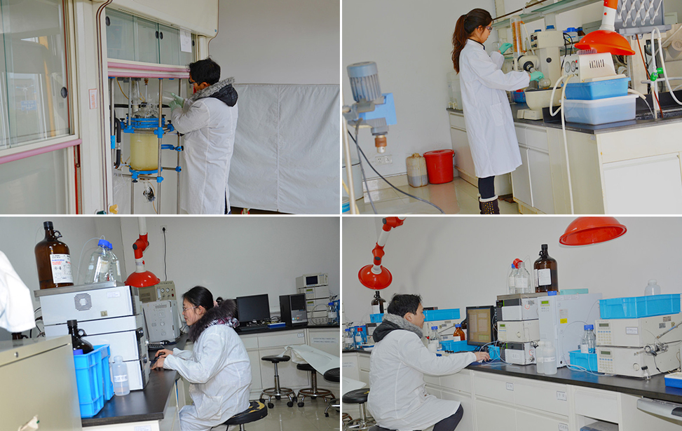 그중 전문적으로 불소 화학 합성 사무실도 포함됩니다 . 그리고 합성 사무실외에 10L~30L 유리지그 반응로 kg급 실험실 및 20L~200L 소용량 생산가능하며 동시에 GMP조건에 부합되며 파일럿 생산 가능한 공장(크리닝 칸)도 있습니다 .